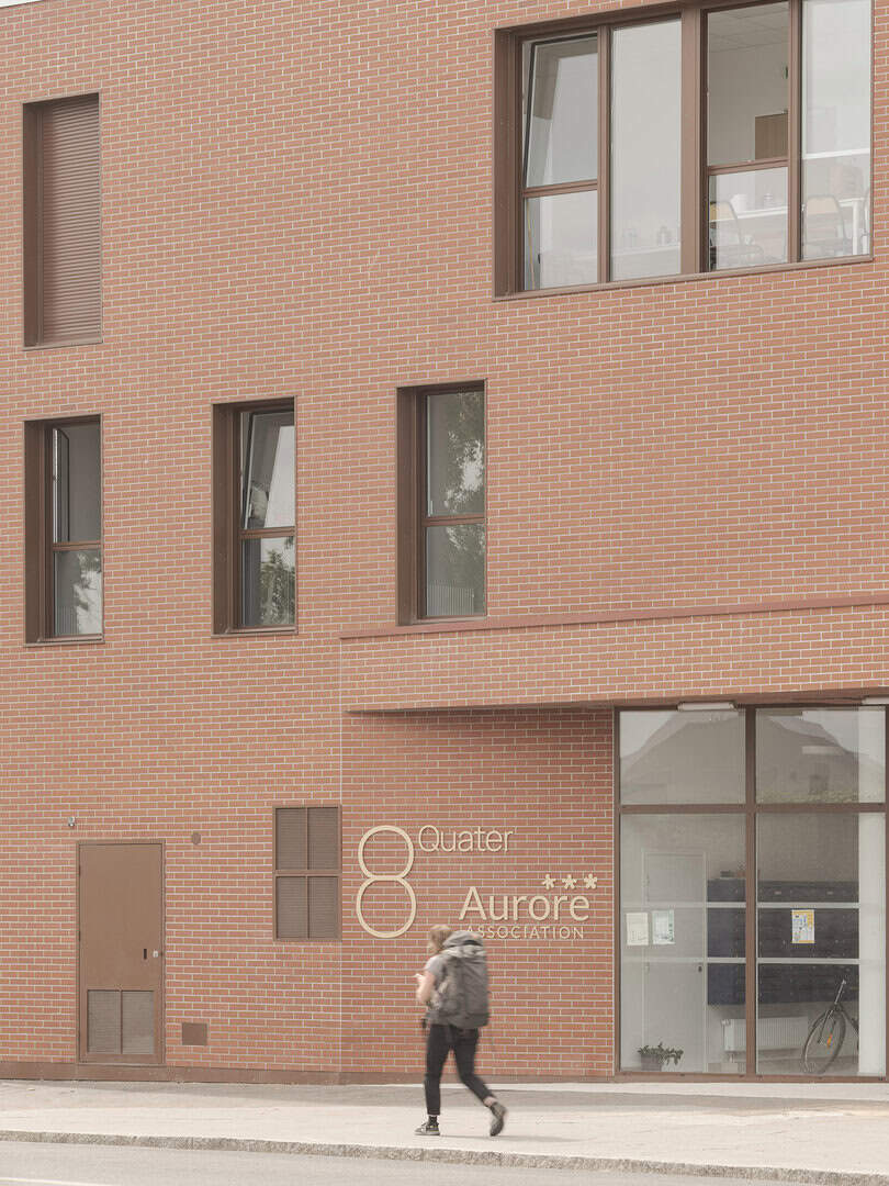 Le projet répond à une demande d’hébergement d’urgence dans la ville de Nantes au coeur de la ZAC Mellinet. Il s’agit de la construction d’un centre d’hébergement de 50 logements T1 et T1bis évolutifs et d’un pôle communs avec services, bureaux et tiers lieux en RDC et R+2 au profit de l’Association Aurore. Les logements T1 et T1bis PMR sont évolutifs en 9 maisonnées R+1.